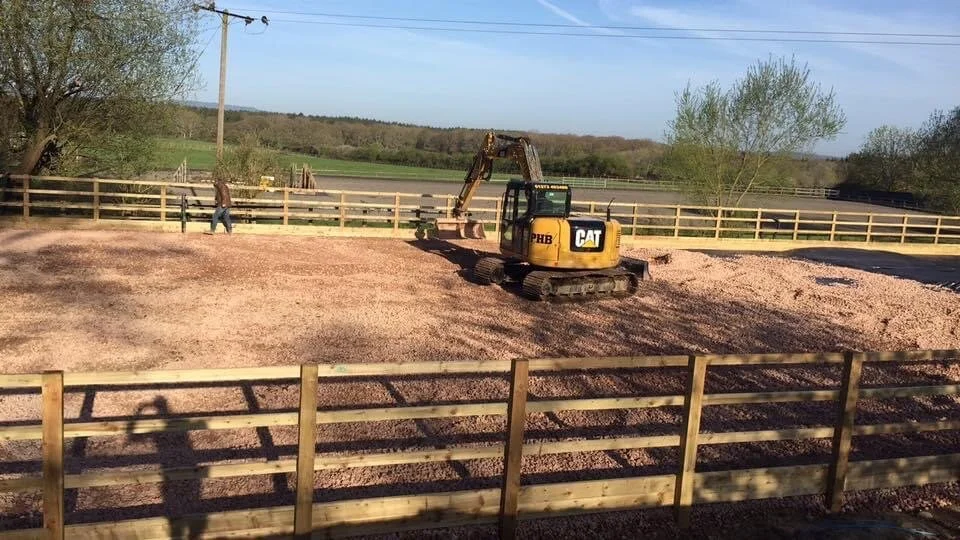 From sand schools to gallops and stables we can carry out the work from start to finish or we can prepare the ground, supplying the concrete base, power and water supplies ready for an off-the-shelf product. See some example projects below.